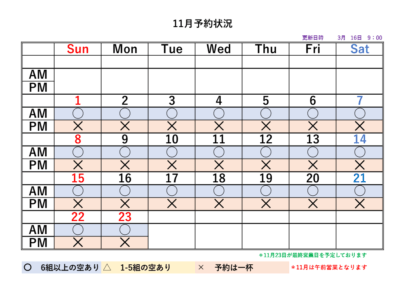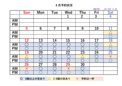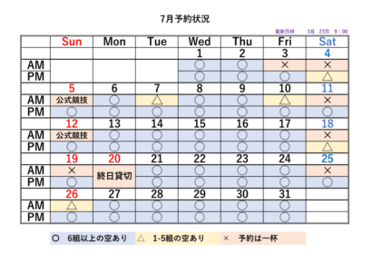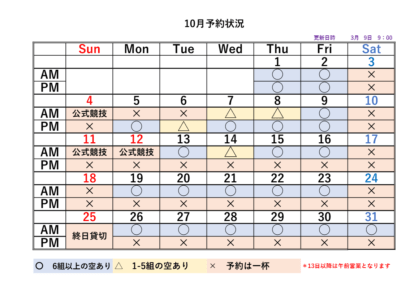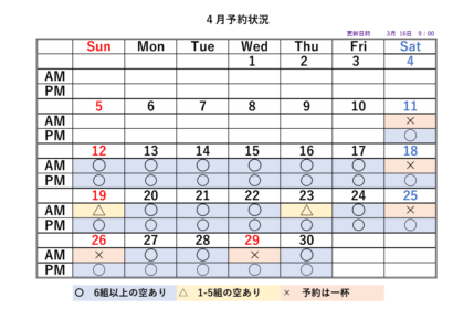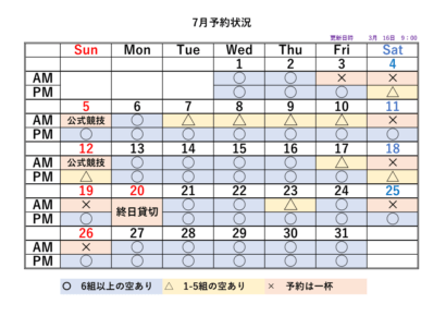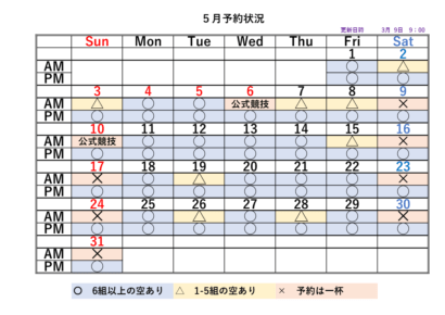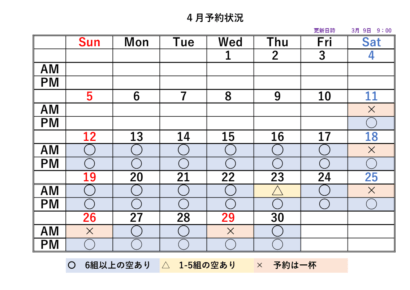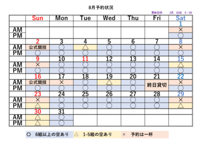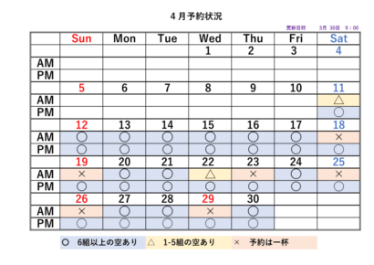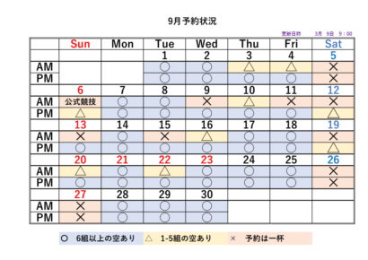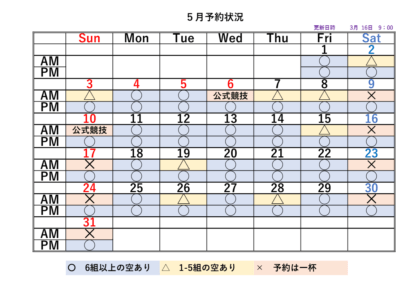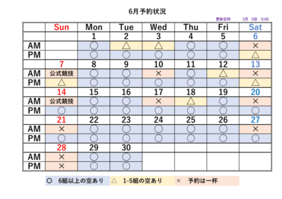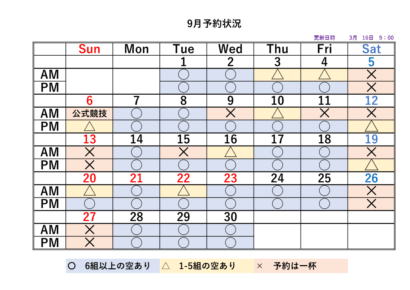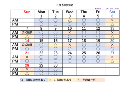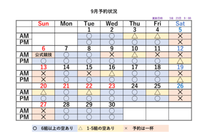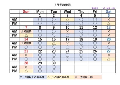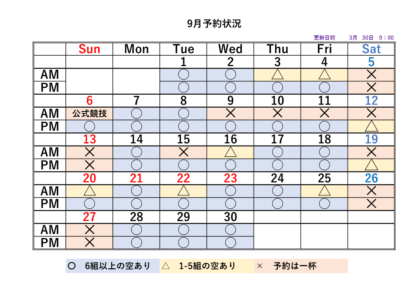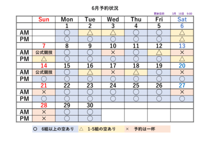2026シーズンの予約状況表です